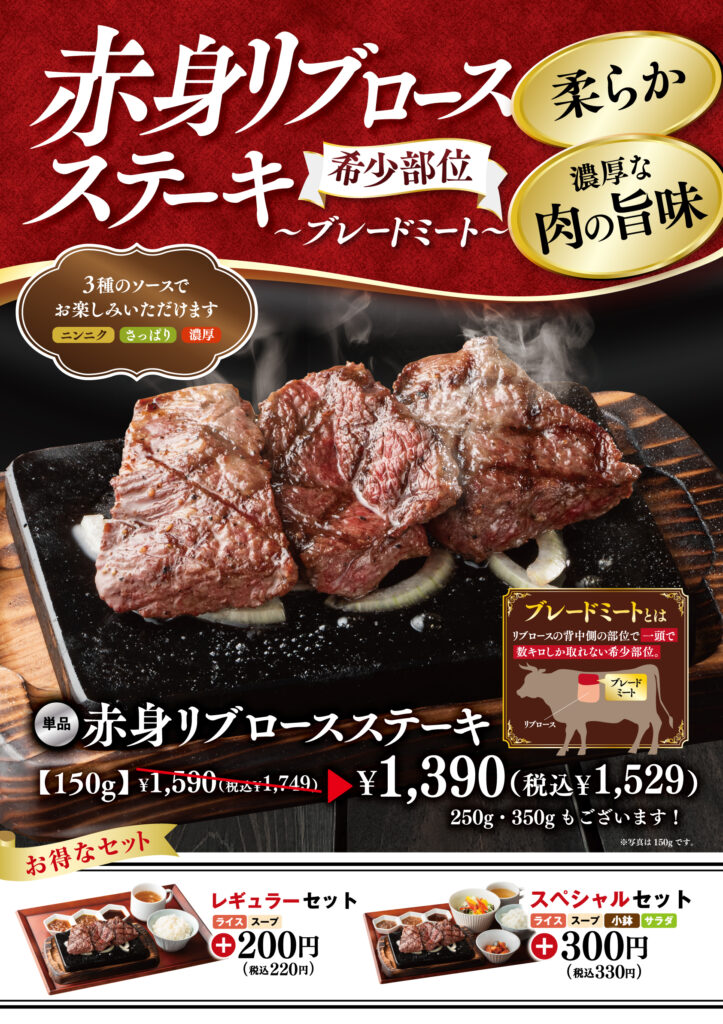 柔らかく、濃厚な肉の旨みを存分に堪能できる赤身リブロースの希少部位「ブレードミート」が